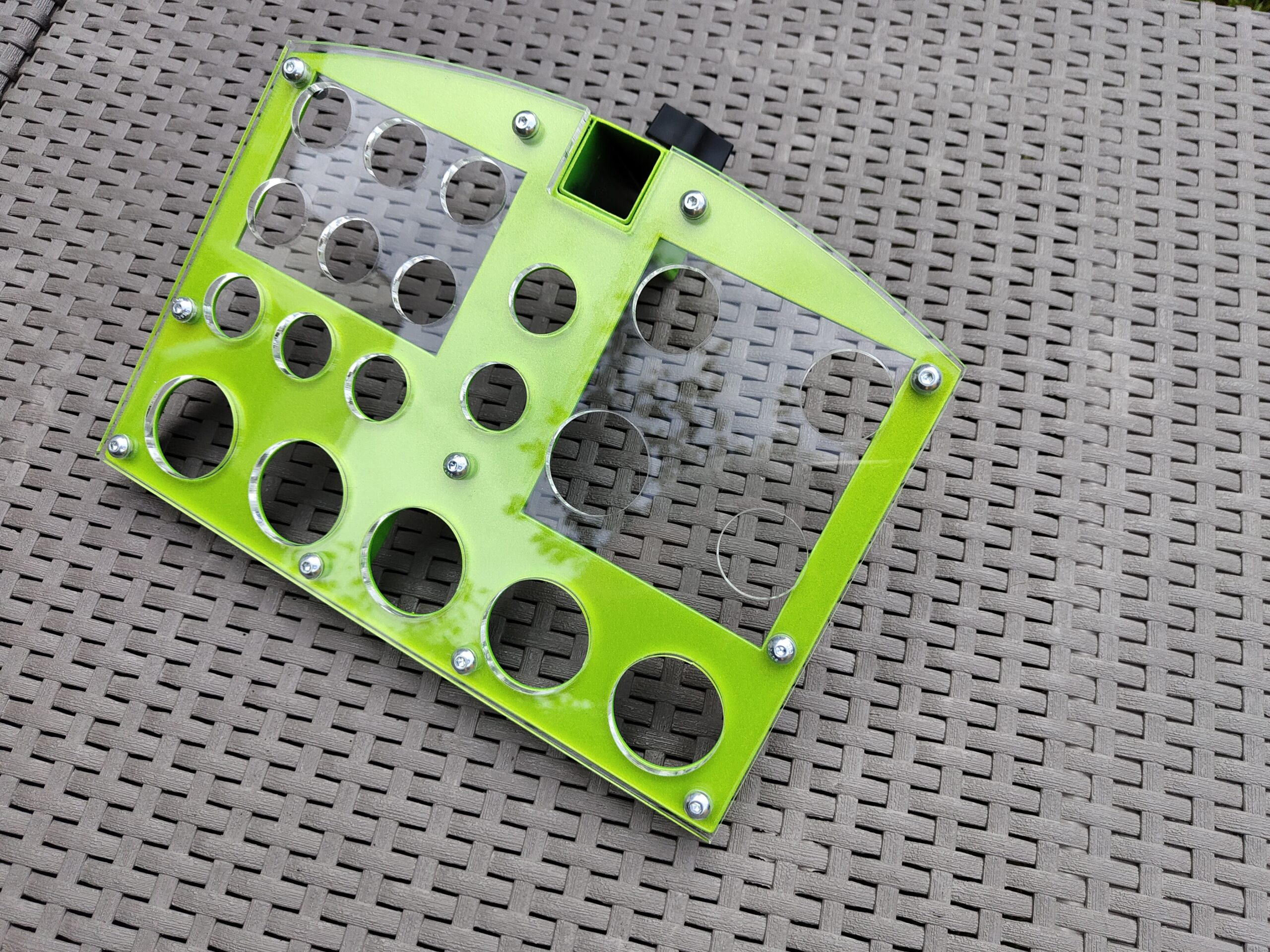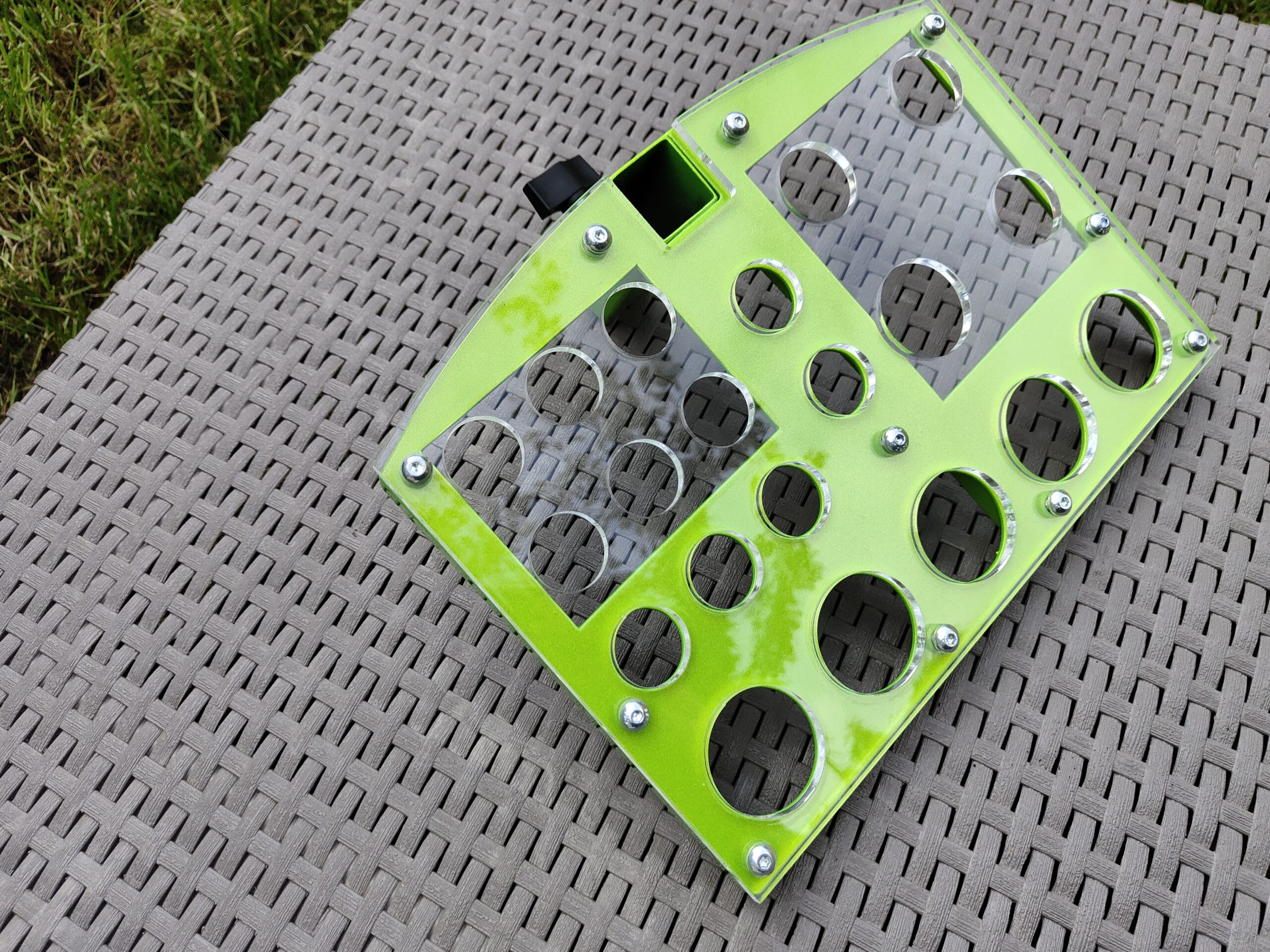Przybornik solidnie wykonany i spawany metodą laserowa.