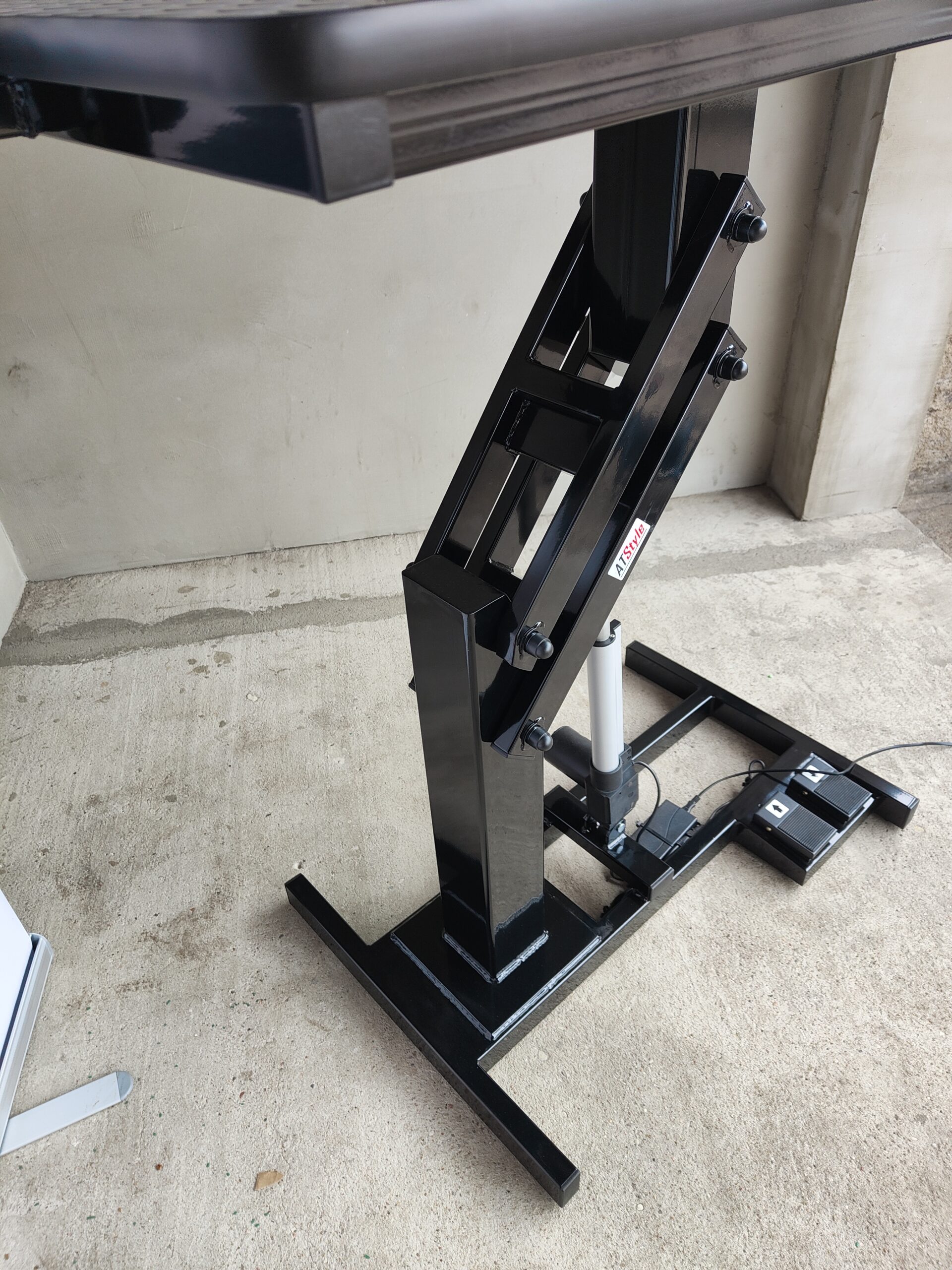 Stół zaprojektowany na konkretnej konstrukcji i wzmocniony. Mocna podstawa